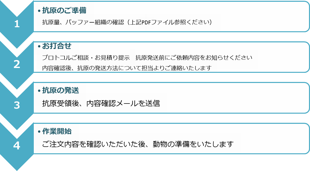 すでに抗原ペプチド配列がお決まりのお客様も所定のフォームよりお問い合わせ下さい。